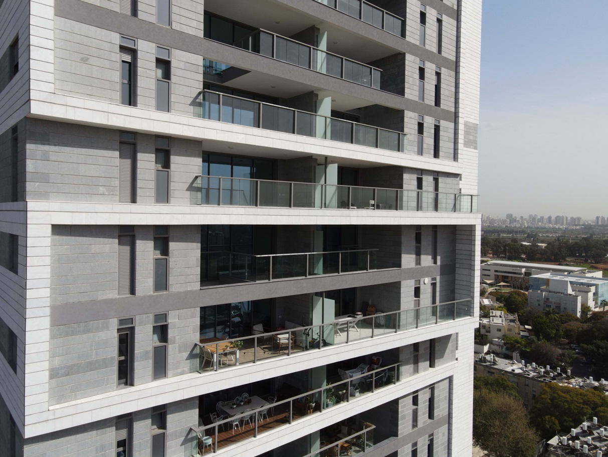 בפרויקט רום במות מודיעין, בוצע חיפוי קירות באמצעות לוחות אלוקובונד ביחד עם חיפוי קיר בטון אדריכלי באמצעות חומר ה GRC